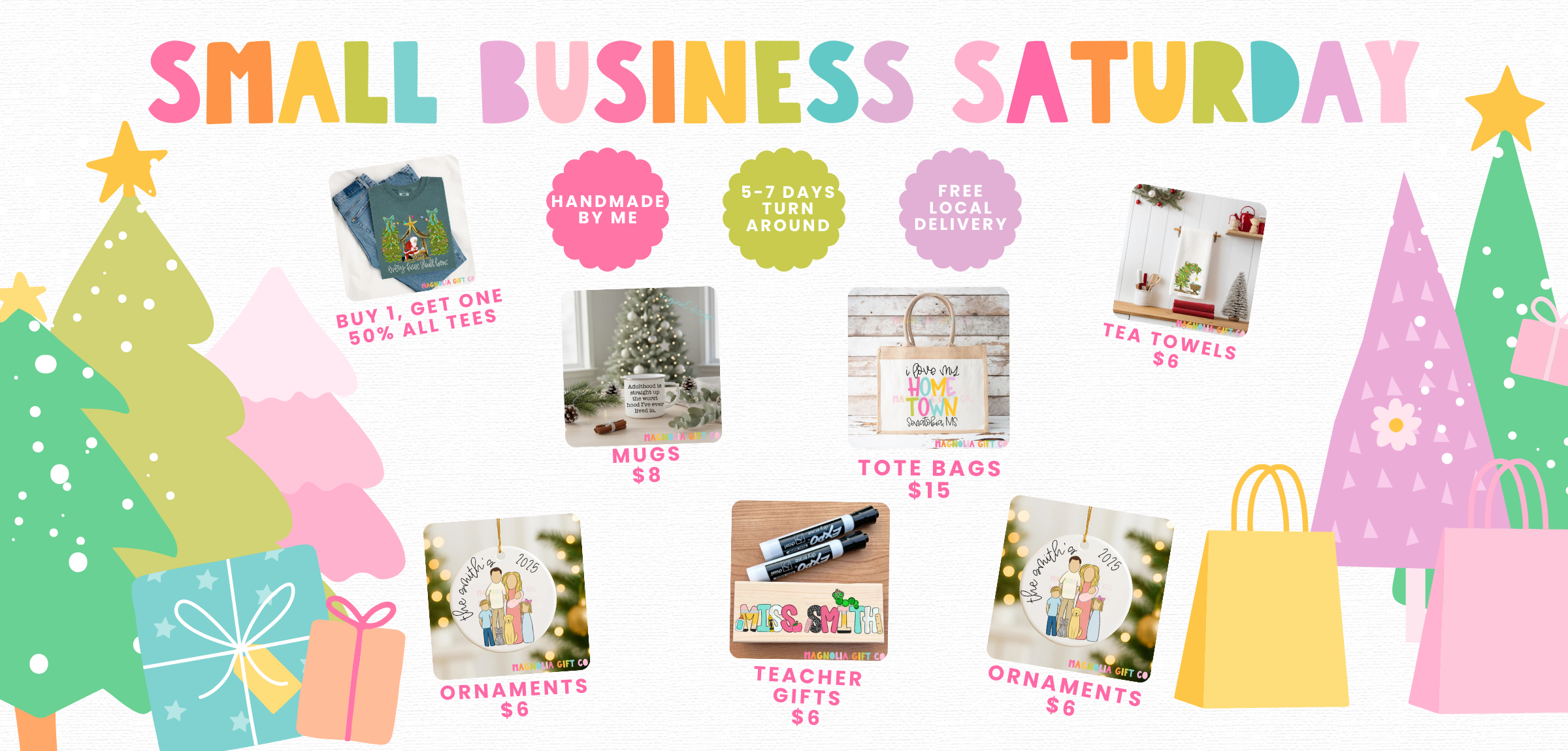 Magnolia Gift Co. was founded in 2020 right here in Senatobia, MS. All of our products are selected and made with the highest quality materials & so much love and time go into making everything! Happy Shopping!