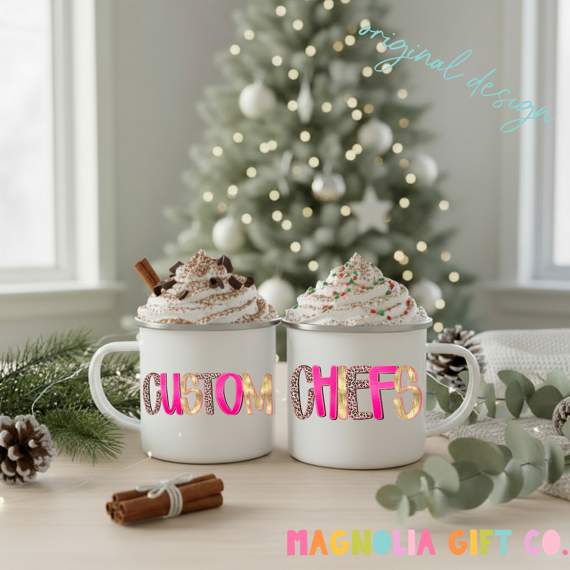 - Design is placed on both sides of the coffee mug